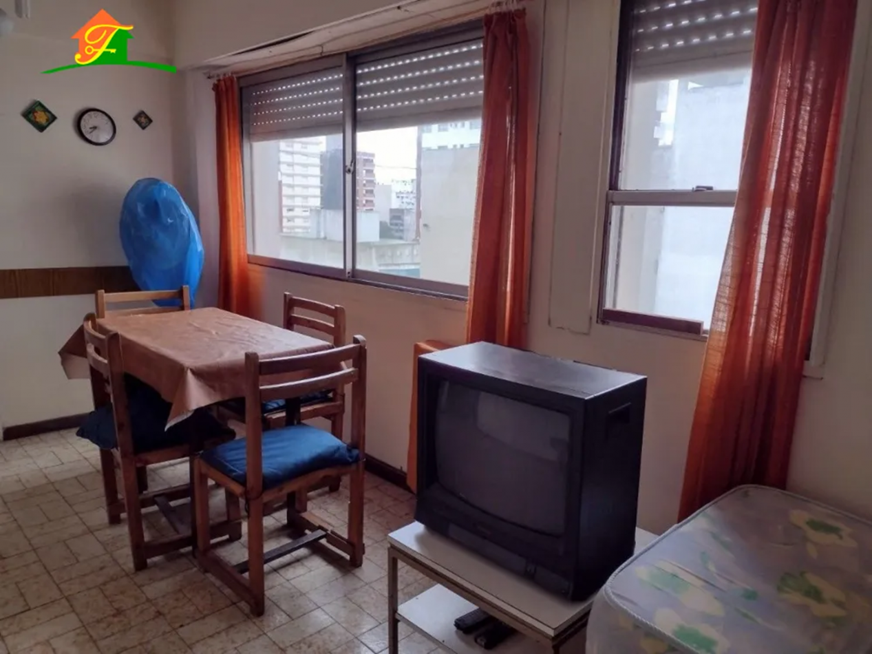 Se ofrece a la venta departamento de un ambiente en excelente ubicación ,a metros de la catedral de Mar del Plata y shopping Los Gallegos. Al entrar al departamento nos encontramos con un pasillo y amplio Placard,a la izquierda está el baño completo con bañera y saliendo de este al lado tenemos la cocina separada del comedor.Al otro lado nos encontramos con un amplio comedor y muy luminoso. El departamento se vende amoblado sin heladera.